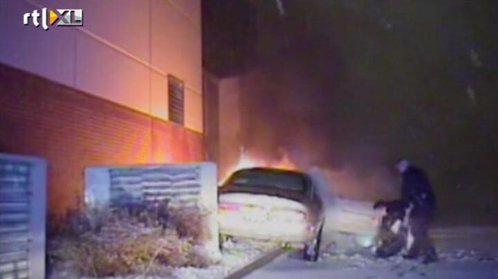 Agent redt man uit brandende auto