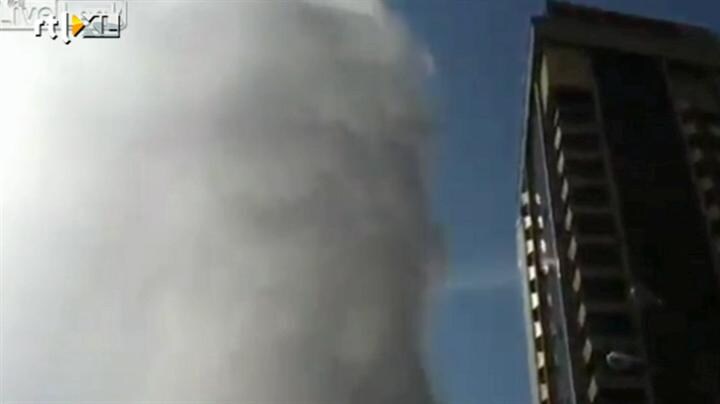 Een ondergrondse pijp van de stedelijke warmwatervoorziening in Jekaterinenburg in Rusland is gesprongen. Het gevolg een kokendehete torenhoge fontein.