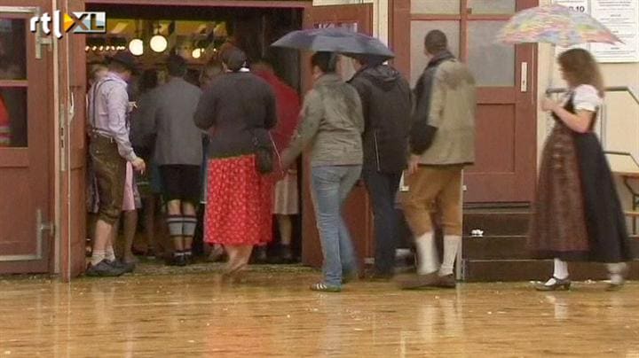 De start van de traditionele Oktoberfesten in Munchen is behoorlijk verknald. In plaats van bier vloeiden er bakken vol regen door de straten.