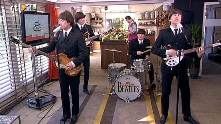 Coverband The Cavern Beatles speelt het nummer I Want To Hold Your Hand.