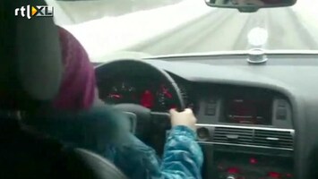 Racen op een gladde weg in Rusland. Dat doet de 8-jarige Karina die autorijles krijgt van haar vader. De meter haalt 100 kilometer per uur.