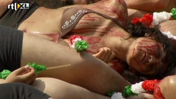 De weerstand tegen stierenvechten groeit met de dag. In Mexico, waar elk jaar 9000 stieren de dood vinden, gingen 1000 mensen de straat op voor een 'bloedig' protest.