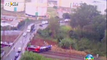 In de omgeving van het Braziliaanse Sao Paulo is een bus op het spoor gevallen en daarna door een trein geramd. Zeker 15 mensen raakten gewond.